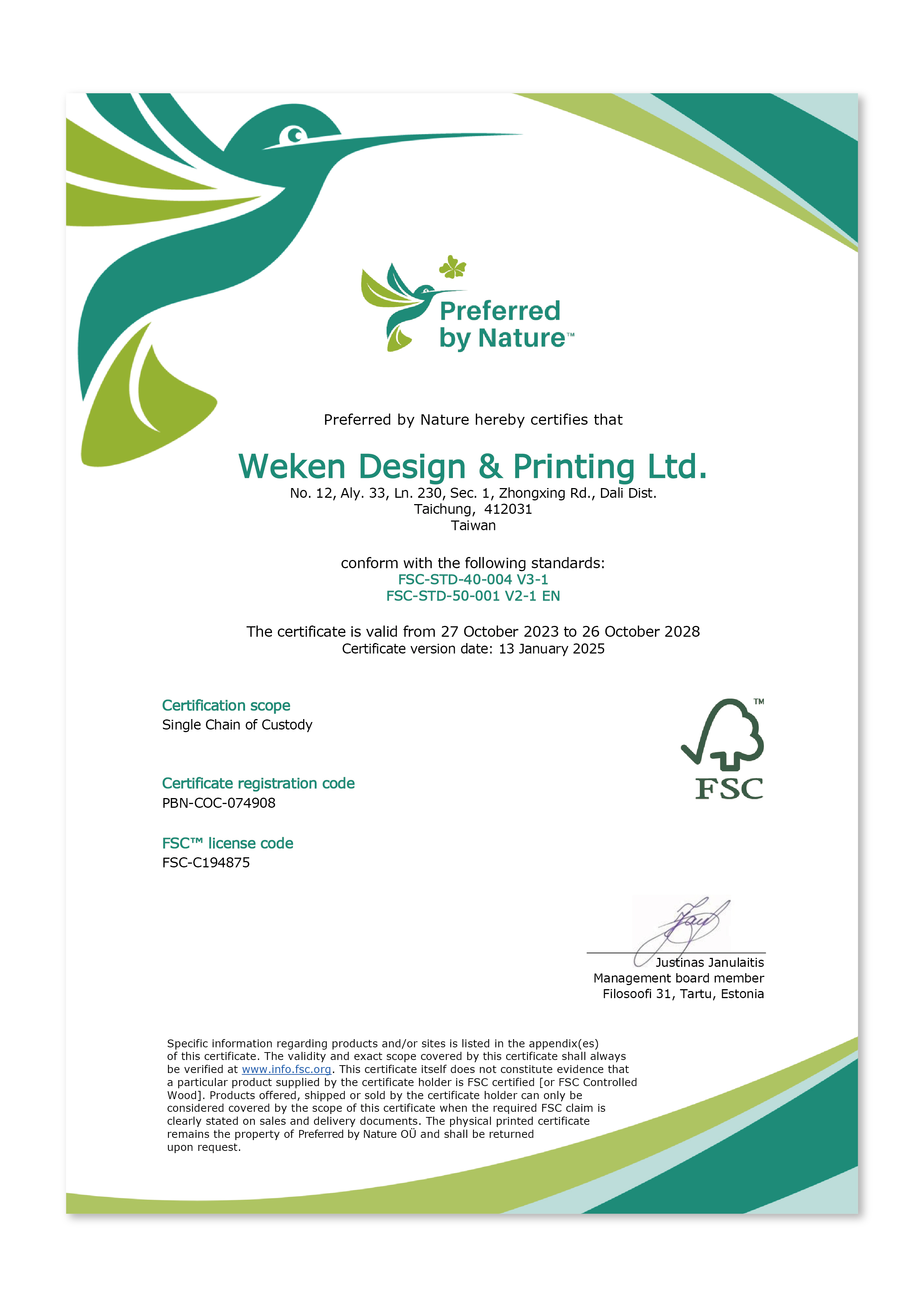 賀!本公司通過FSC™CoC驗證